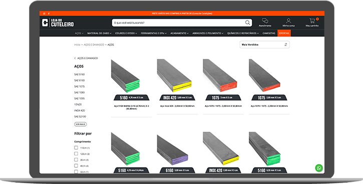 Conheça a Loja do Cuteleiro e adquira o aço 5160 em diferentes medidas, assim como aços para cutelaria, cintas de lixa, madeira para cabos de faca e outros insumos para cutelaria profissional ou hobby.
